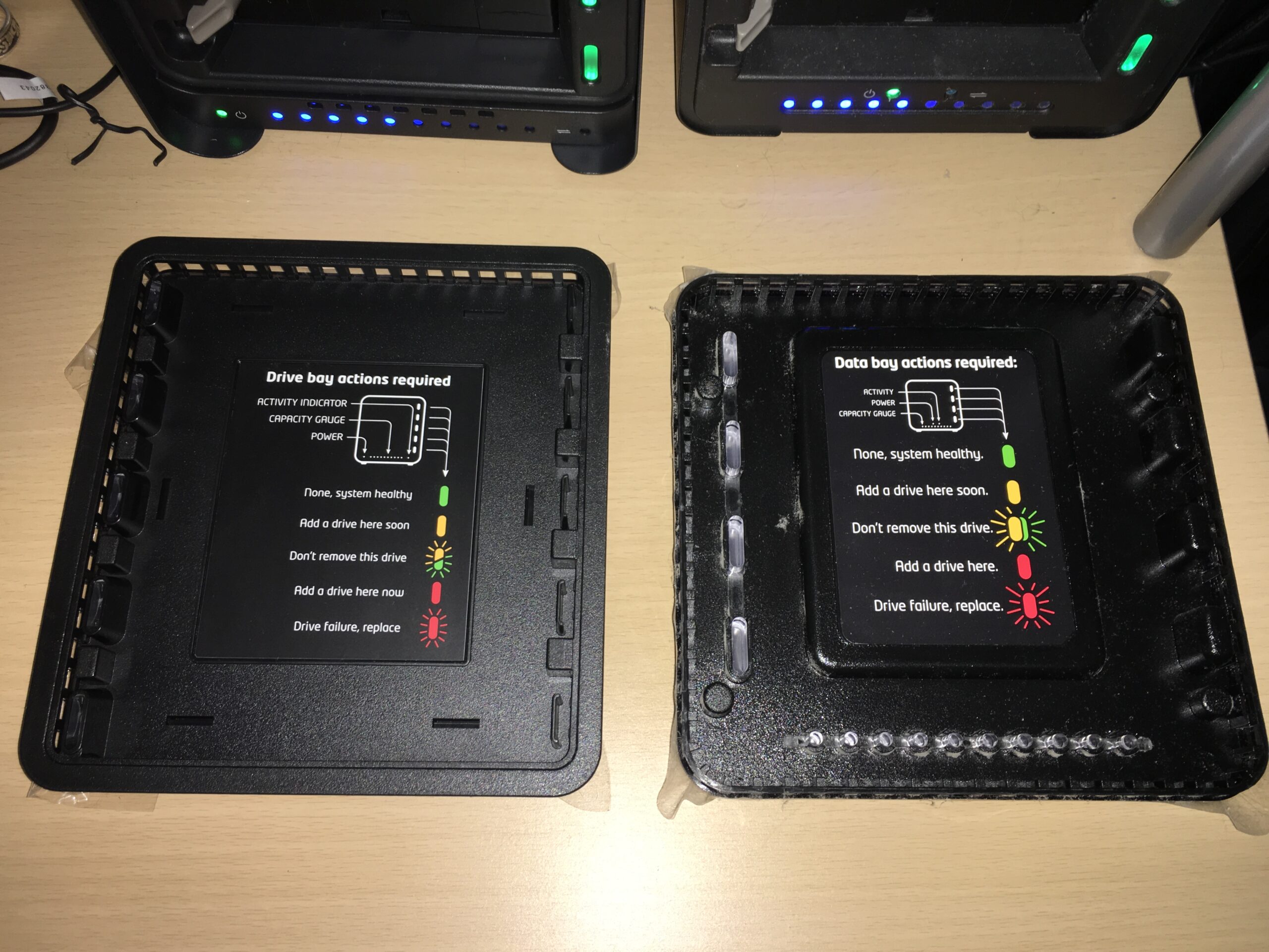 Drobo 5C vs Drobo (3rd gen) front panels.